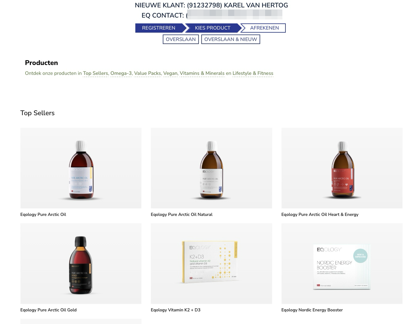 Wanneer het account is aangemaakt, wordt u automatisch ingelogd als de nieuwe klant. U kunt producten bestellen voor uw klant of dit aan hem/haar overlaten.