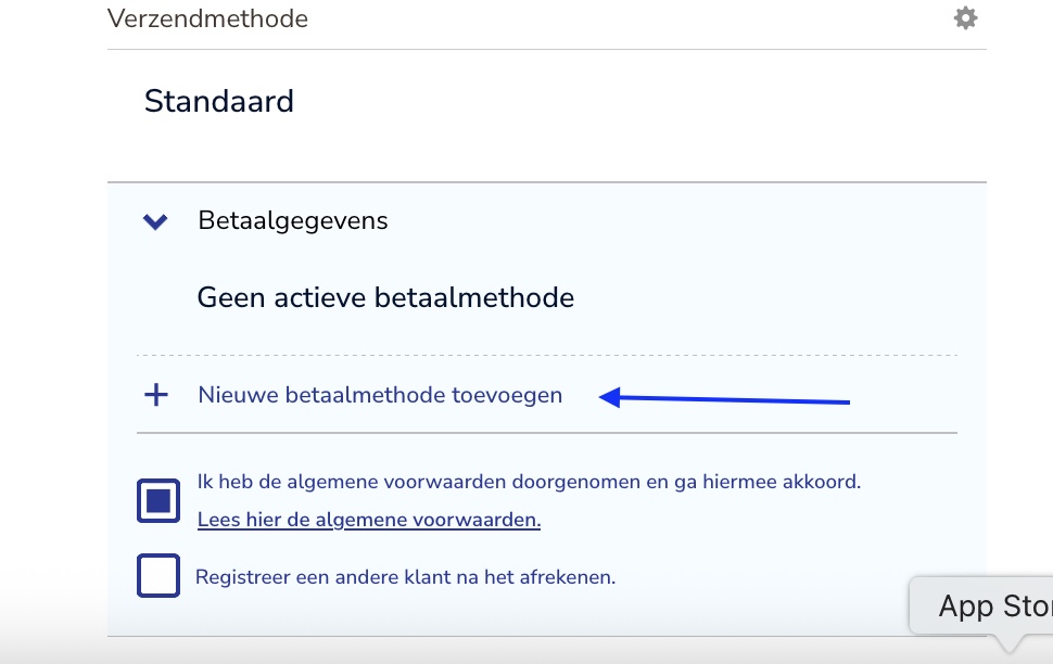 U kunt ook een betaalmethode voor uw klant toevoegen of dit aan hem/haar overlaten. Klik op “Nieuwe betaalmethode toevoegen”.