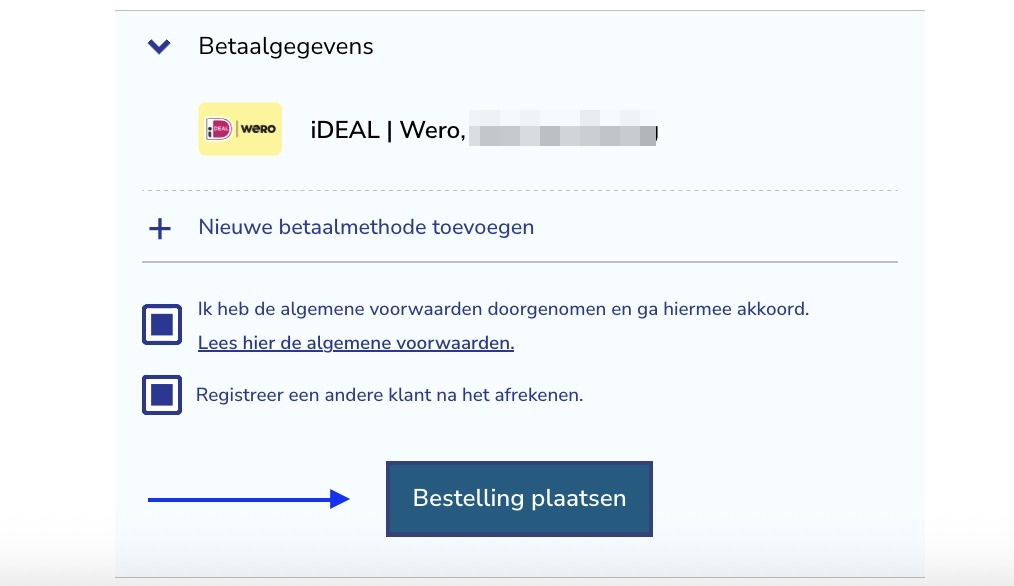 Wanneer u klaar bent, klikt u op de knop “Bestelling plaatsen”.
