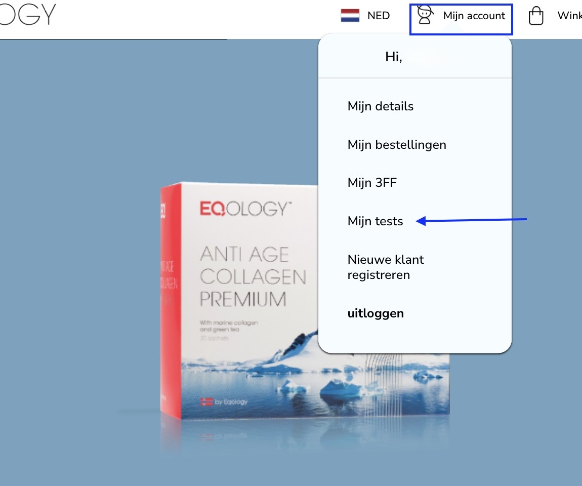 Om uw testresultaten te vinden wanneer u bent ingelogd op de website, klikt u op “Mijn account” en vervolgens op “Mijn tests”.