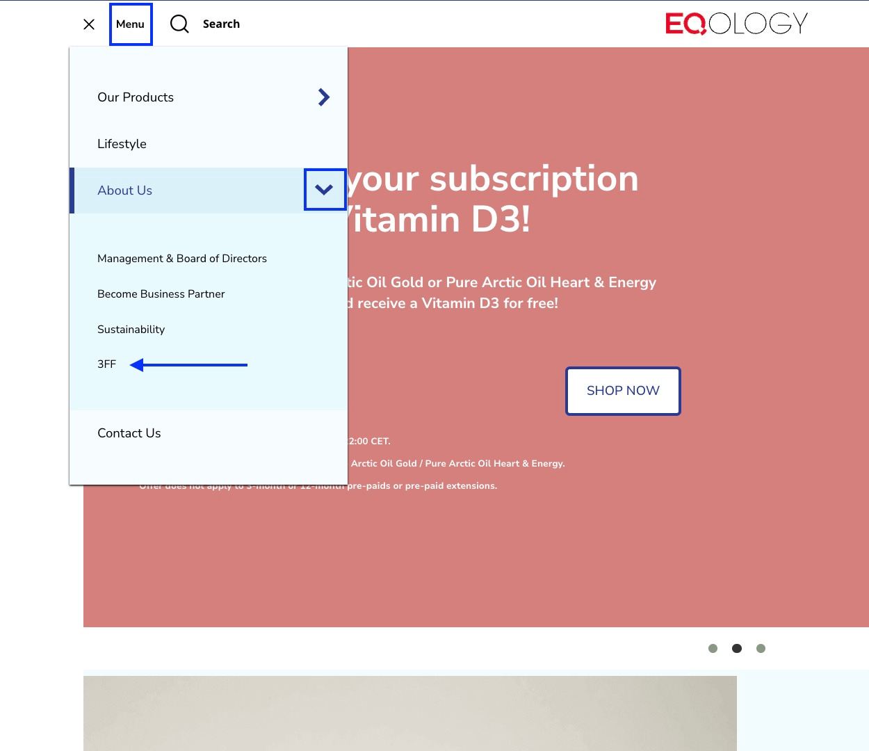Możesz też znaleźć to bezpośrednio na naszej stronie. Kliknij w menu w lewym górnym rogu, następnie w strzałkę obok sekcji "O nas" i wybierz "3FF".