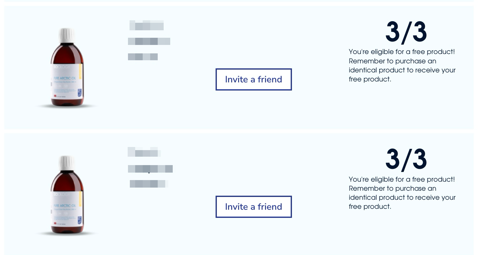 Program 3FF działa w oparciu o miesiąc kalendarzowy. Warto podkreślić, że aktywując swój produkt i zdobywając 3 klientów z tym samym produktem w tym samym miesiącu kalendarzowym, otrzymasz nagrodę 3FF od następnego miesiąca. Na przykład, jeśli kupisz butelkę Pure Arctic Oil w styczniu, a Twoi 3 klienci zrobią to samo również w styczniu, wtedy otrzymasz swoją butelkę za darmo w lutym i będziesz ją otrzymywać za darmo tak długo, jak długo Twoi klienci pozostaną aktywni co miesiąc.